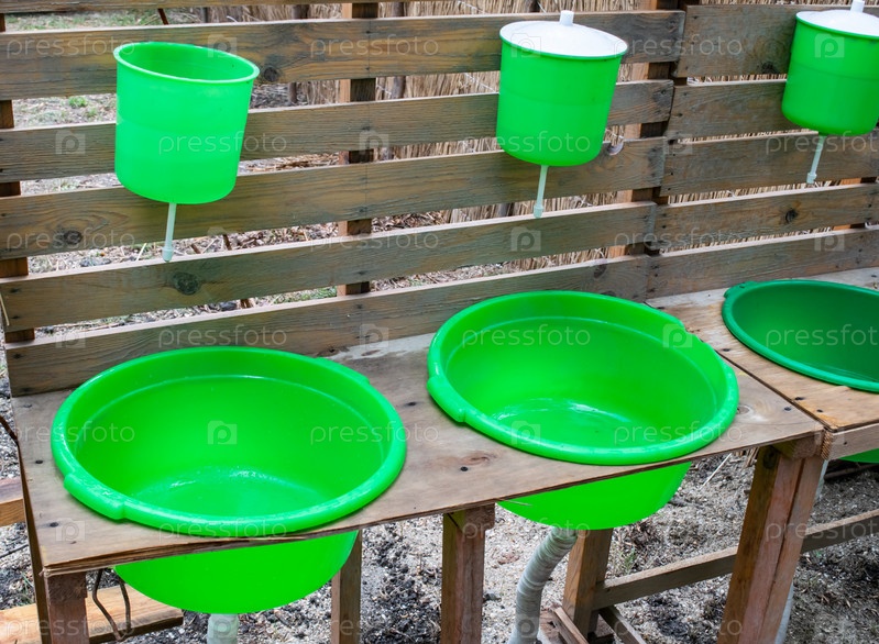 Зеленый умывальник во дворе. Раковина для рук