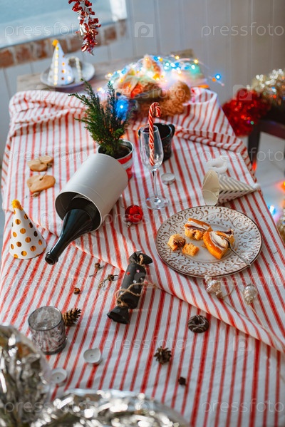 Интерьер комнаты после новогодней вечеринки. синий понедельник