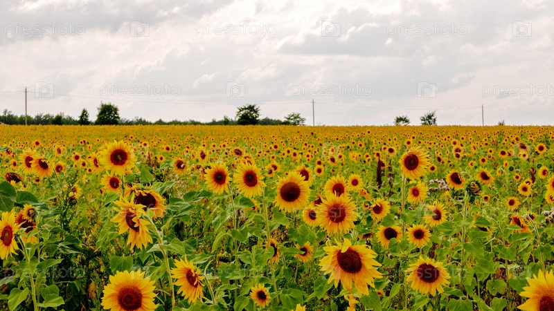 Поле подсолнухов в пасмурную погоду