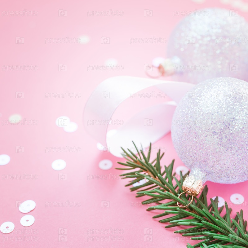 Рождественские жемчужные украшения шары розовый фон