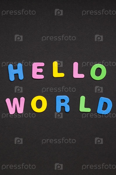 Привет, мир, пишущий на фоне черной бумаги