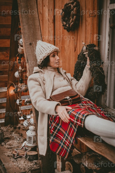 Стильная женщина украсила новогоднюю праздничную террасу современный эко деревенский минималистичный стиль британский флаг скандинавский стиль ручной работы рождество