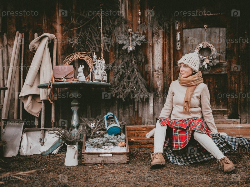 Праздничное украшение женщина создает атмосферу Рождества под открытым небом деревенский минималистичный современный из натуральных экологических материалов скандинавский стиль