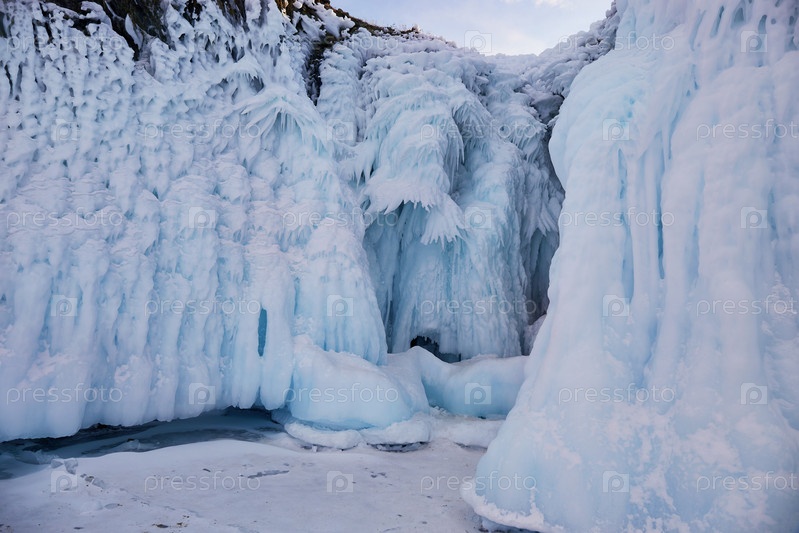 Ледяные скалы острова Ольхон. Замерзшее озеро Байкал