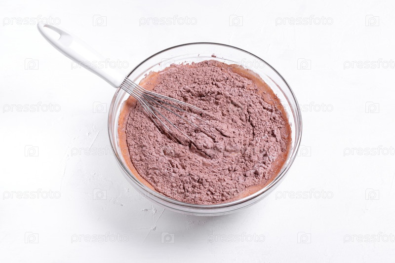 Жидкие и сухие ингредиенты смешать в миске проволочным венчиком. Шаг 6, чтобы сделать шоколадное печенье