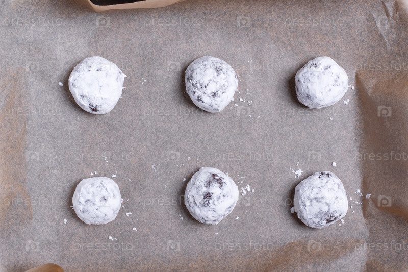 Сырое шоколадное печенье на противне, готовое к выпечке. Шаг 9