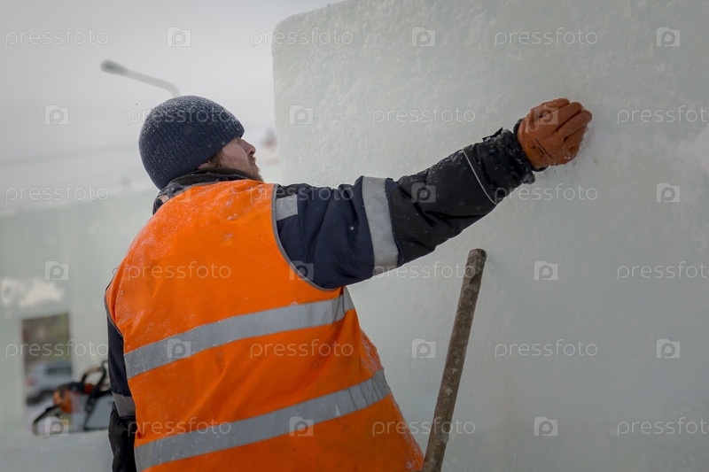 Сборщик в комбинезоне на территории ледового городка
