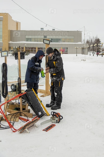 Двое рабочих на площадке ледового лагеря