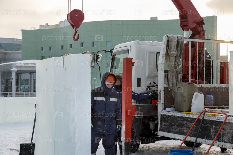 Портрет установщика при разгрузке ледяных блоков