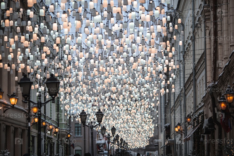 Рождественские украшения. Красивые праздничные пейзажи Москвы. Столешников переулок украшен красивыми фонарями. Россия