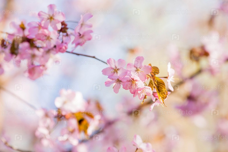 Баннер. Цветение вишни. Весна, природа обои. Вишневый цвет в саду. Цветущие бутоны роз на ветвях дерева в японском саду в дендрарии. Макро фотография. Россия, Царицыно