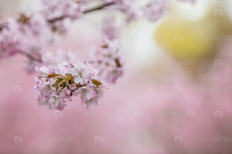 Баннер. Цветение вишни. Весна, природа обои. Вишневый цвет в саду. Цветущие бутоны роз на ветвях дерева в японском саду в дендрарии. Макро фотография. Россия, Царицыно