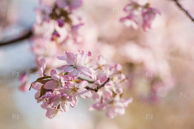 Баннер. Цветение вишни. Весна, природа обои. Вишневый цвет в саду. Цветущие бутоны роз на ветвях дерева в японском саду в дендрарии. Макро фотография. Россия, Царицыно
