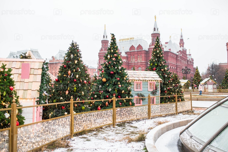 Новый год. Новогодние украшения на улицах Москвы. Рождественские праздники, зимний пейзаж. Украшенная Красная площадь в центре Москвы. Россия