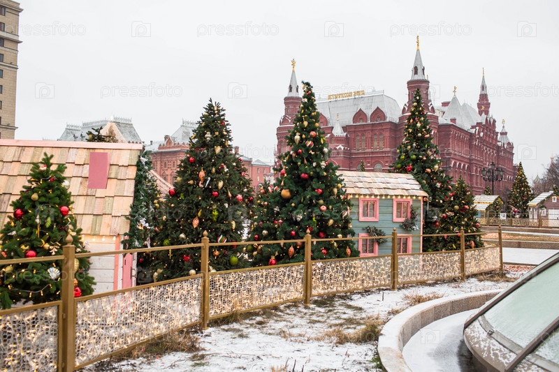 Новый год. Новогодние украшения на улицах Москвы. Рождественские праздники, зимний пейзаж. Украшенная Красная площадь в центре Москвы. Россия
