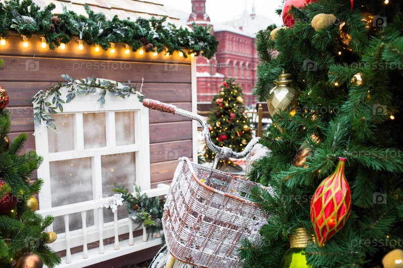 Новый год. Новогодние украшения на улицах Москвы. Рождественские праздники, зимний пейзаж. Рождественская ярмарка на празднично украшенной Красной площади. Москва