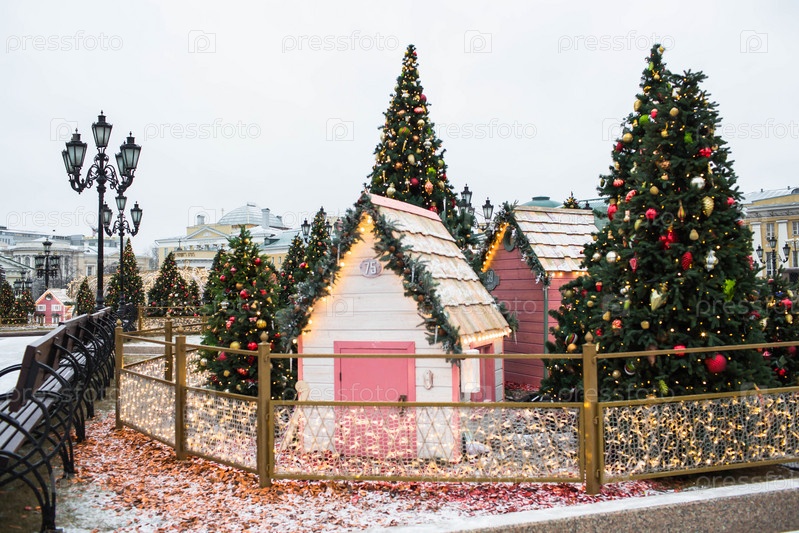 Новый год. Новогодние украшения на улицах Москвы. Рождественские праздники, зимний пейзаж. Украшенная Красная площадь в центре Москвы. Россия