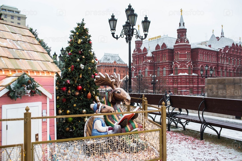 Новый год. Новогодние украшения на улицах Москвы. Рождественские праздники, зимний пейзаж. Украшенная Красная площадь в центре Москвы. Россия