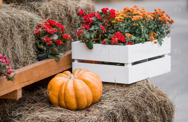 Декоративные тыквы с фестиваля Золотая осень в Москве, возле Красной площади, в Кремле. Декор Хэллоуина с различными тыквами, осенними овощами и цветами. Урожай и украшение сада