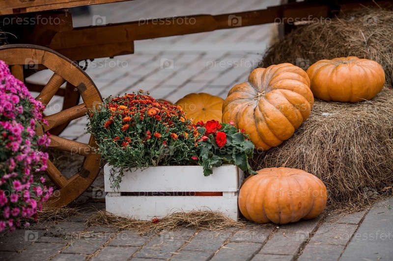 Декоративные тыквы с фестиваля Золотая осень в Москве, возле Красной площади, в Кремле. Декор Хэллоуина с различными тыквами, осенними овощами и цветами. Урожай и украшение сада