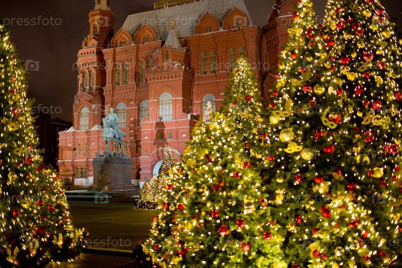 Новогоднее украшение Красной площади. Гирлянды, елочки, огоньки. Красивые праздничные пейзажи в городе Москве. Россия