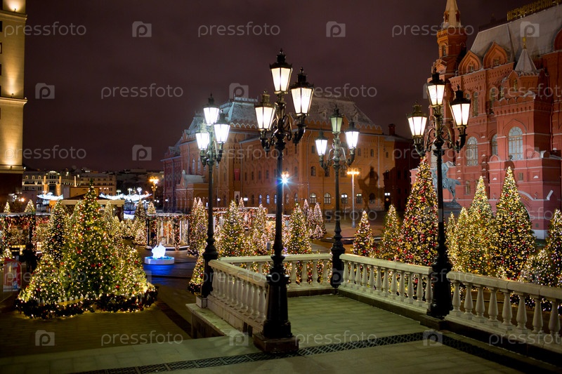 Новогоднее украшение Красной площади. Гирлянды, елочки, огоньки. Красивые праздничные пейзажи в городе Москве. Россия