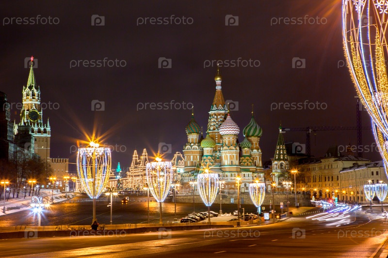 Новогоднее украшение Красной площади. Гирлянды, елочки, огоньки. Красивые праздничные пейзажи в городе Москве. Россия