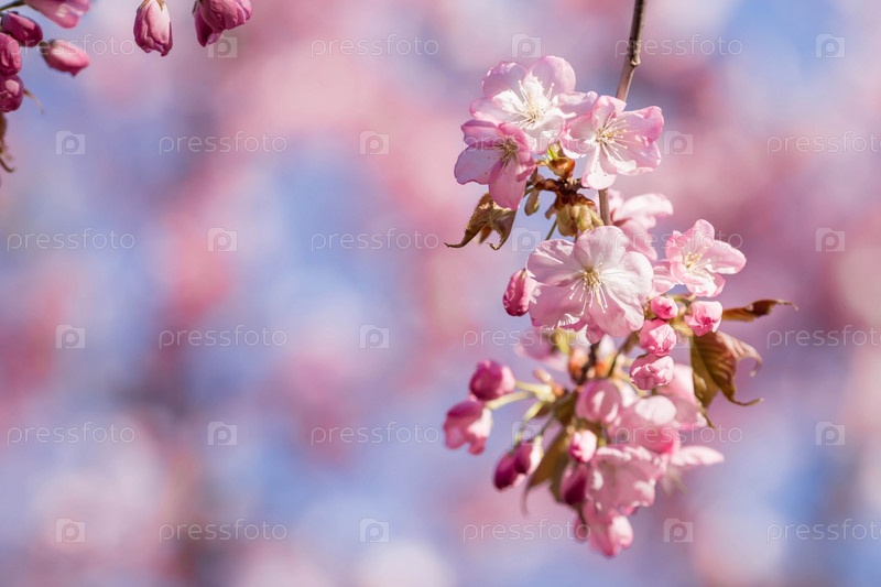 Баннер. Цветение вишни. Весна, природа обои. Вишневый цвет в саду. Цветущие бутоны роз на ветвях дерева в японском саду в дендрарии. Макро фотография. Россия, Царицыно