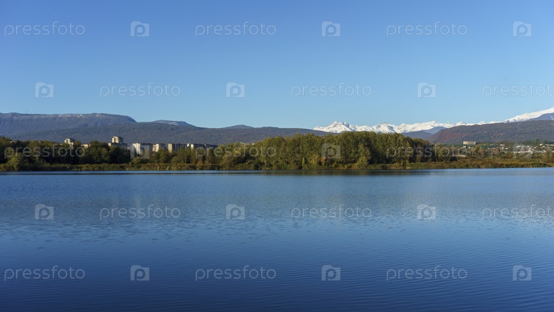 Природный ландшафт с видом на озеро. Сухуми, Абхазия