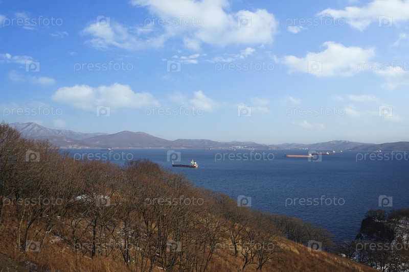 Морской пейзаж с видом на залив находка, россия
