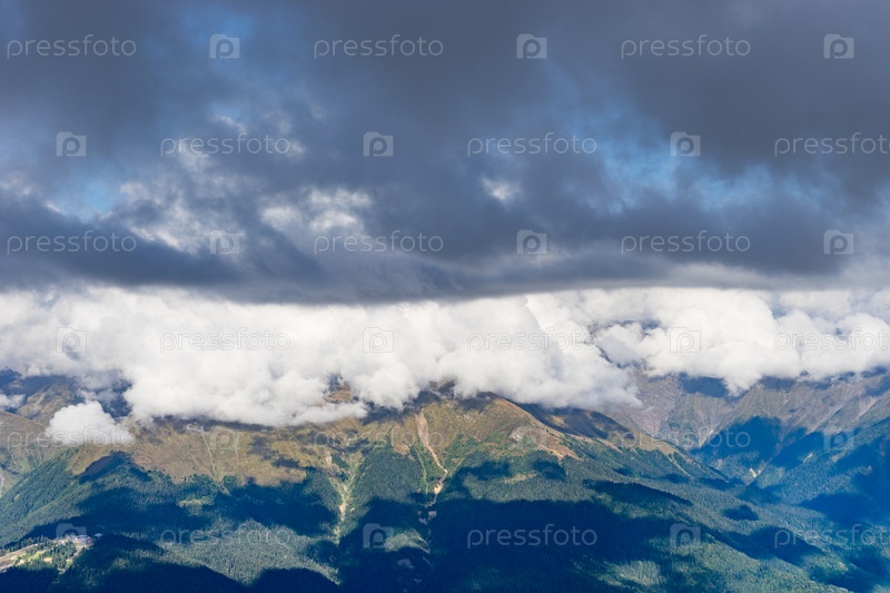 Горный пейзаж со скалистыми склонами на Красной Поляне