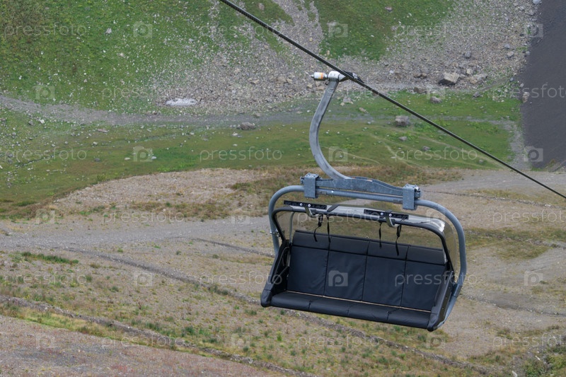 Канатная скамейка на канатной дороге на фоне горного ландшафта