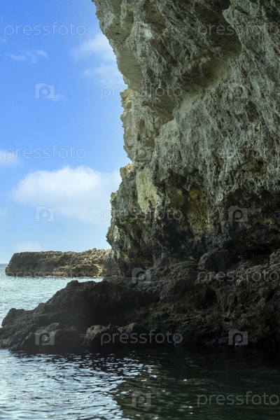 Морской пейзаж с видом на высокую скалу у моря