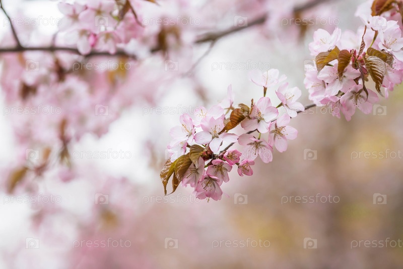 Баннер. Цветение вишни. Весна, природа обои. Вишневый цвет в саду. Цветущие бутоны роз на ветвях дерева в японском саду в дендрарии. Макро фотография. Россия, Царицыно