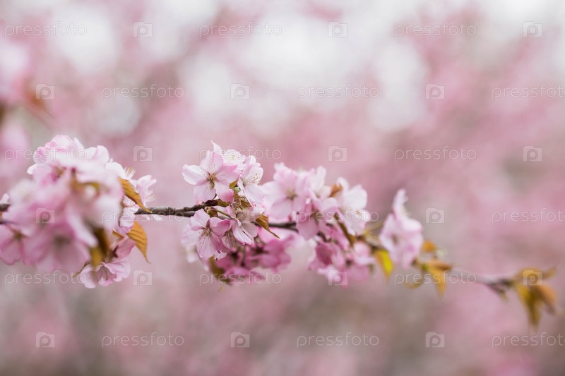 Баннер. Цветение вишни. Весна, природа обои. Вишневый цвет в саду. Цветущие бутоны роз на ветвях дерева в японском саду в дендрарии. Макро фотография. Россия, Царицыно
