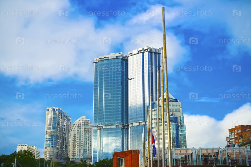 Городской пейзаж со зданиями на фоне неба
