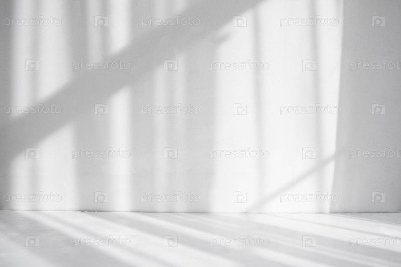 Абстрактный белый фон. Тени на белом столе и белой стене