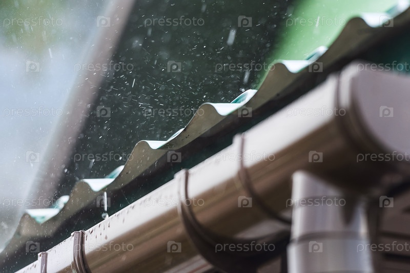 Дождь стекает с крыши вниз