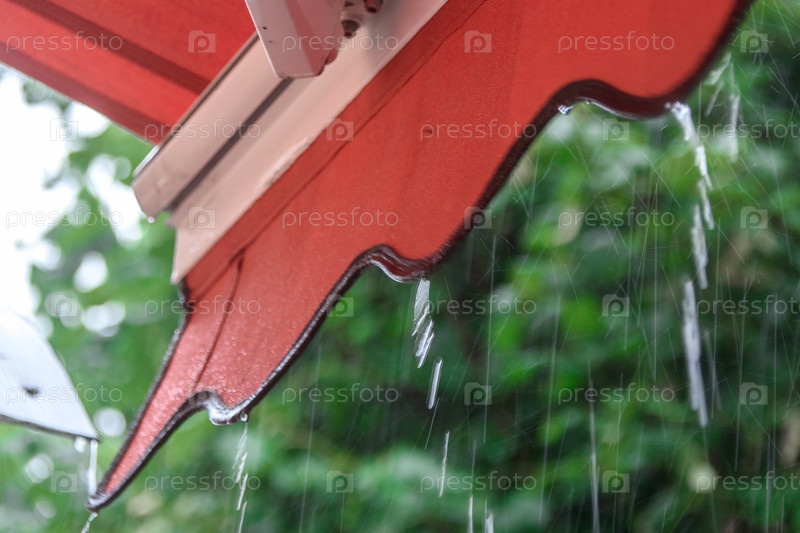 Дождь капает с крыши летнего кафе