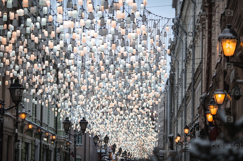 Рождественские украшения. Красивые праздничные пейзажи Москвы. Столешников переулок украшен красивыми фонарями. Россия