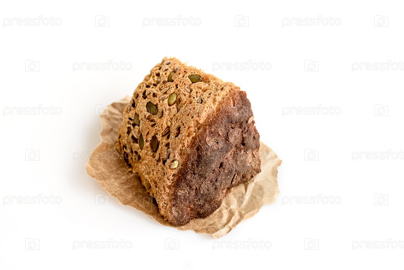 Ломтик домашнего зернового хлеба на белом