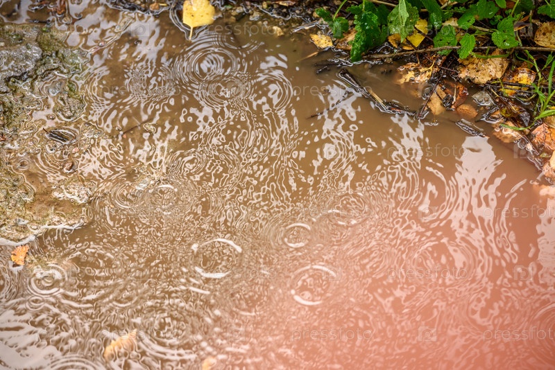 Дождевая лужа крупным планом. В сезон дождей. Плохая погода