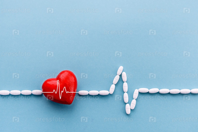 Красное сердце на синем фоне. Концепция здоровья, поддержки, международного или национального дня кардиологии