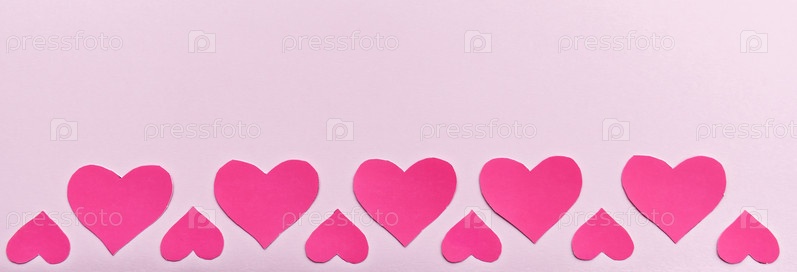Красные сердца на романтическом розовом фоне
