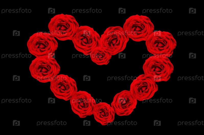 Рамка в форме сердца из красных роз на черном фоне. Концепция Дня святого Валентина