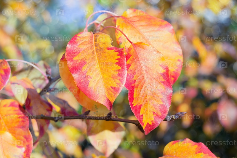 Осенние красивые листья груши. Естественный яркий осенний фон