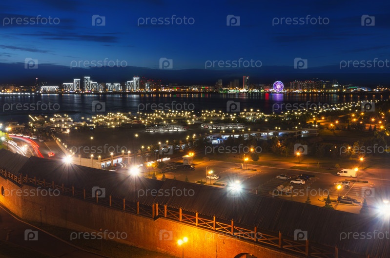 Казань ночью, вид на набережную реки Казанки и жилые кварталы на противоположном берегу