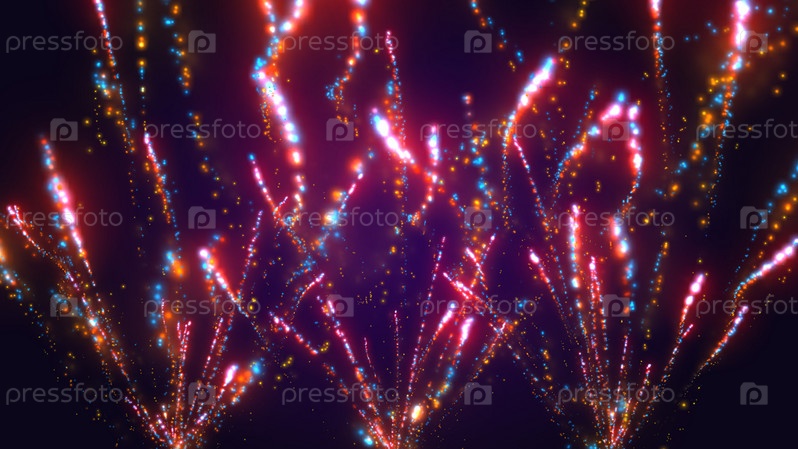 Абстрактный фиолетовый фон с разноцветными фейерверками