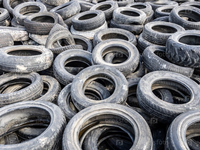 Большая куча свалки шин. Незаконная свалка мусора. Концепция загрязнения экологии