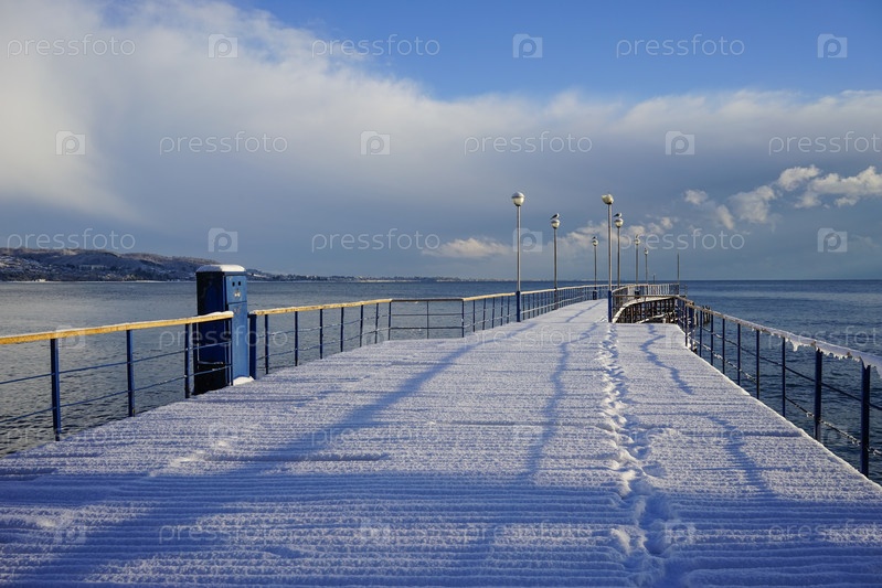 Морской причал в субтропической стране под слоем снега